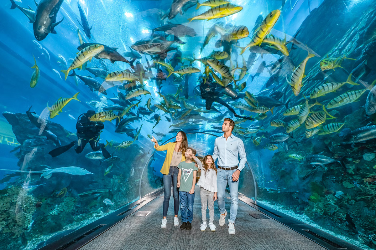 Uzunluğu 51 metre ve genişliği 20 metre olan etkileyici bir alana yayılan bu devasa yapı 10 milyon litre su ile doldurulmaktadır. Yapıda dayanıklılığı sağlamak için 76 cm kalınlığında darbeye dayanıklı cam kullanılmıştır. Otantik bir su altı ambiyansı yaratmak için 10 milyon litre su özenle eklenmiştir. Akvaryum 33.000’den fazla su altı hayvanına ev sahipliği yaparak ziyaretçilere çok çeşitli deniz yaşamını keşfetmek için olağanüstü bir fırsat sunuyor. Binanın her tarafına stratejik olarak yerleştirilen izleme pencereleri, akvaryumun çeşitli alanlardan net bir şekilde görülebilmesini sağlıyor. Ayrıca, herhangi bir su sızıntısını önlemek için suya dayanıklı cam izolatörler kullanılmış, böylece darbe durumunda bile ziyaretçiler için güvenli ve keyifli bir ortam sağlanmıştır.