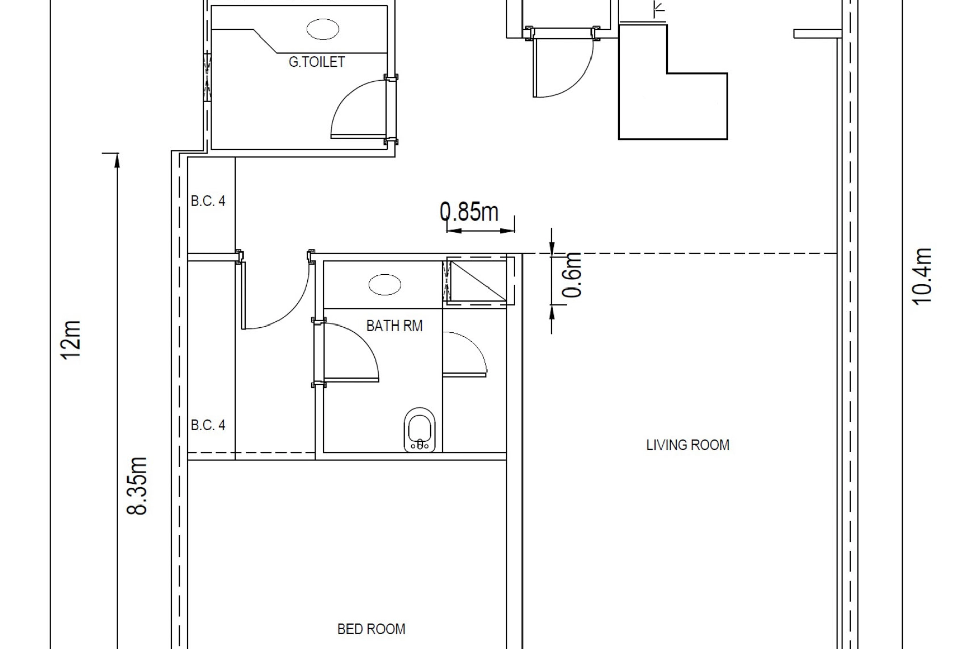 1 bedroom, 1 living room with open plan fully equipped kitchen, 1 master bathroom, 1 guest toilet room and 1 storage room. See floor plan drawing in the pictures.